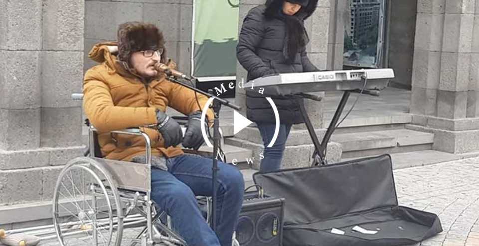 Երևանում հաշմանդամի սայլակին նստած տղամարդը երգում է «Չունի աշխարհը քեզ նման։ Տղամարդը գումար է աշխատում հանրահայտ ստեղծագործություններ երգելով։ Տեսանյութում երևում է, թե ինչպես է նա իր «այցեքարտը» փոխանցում գումար տվողներին։