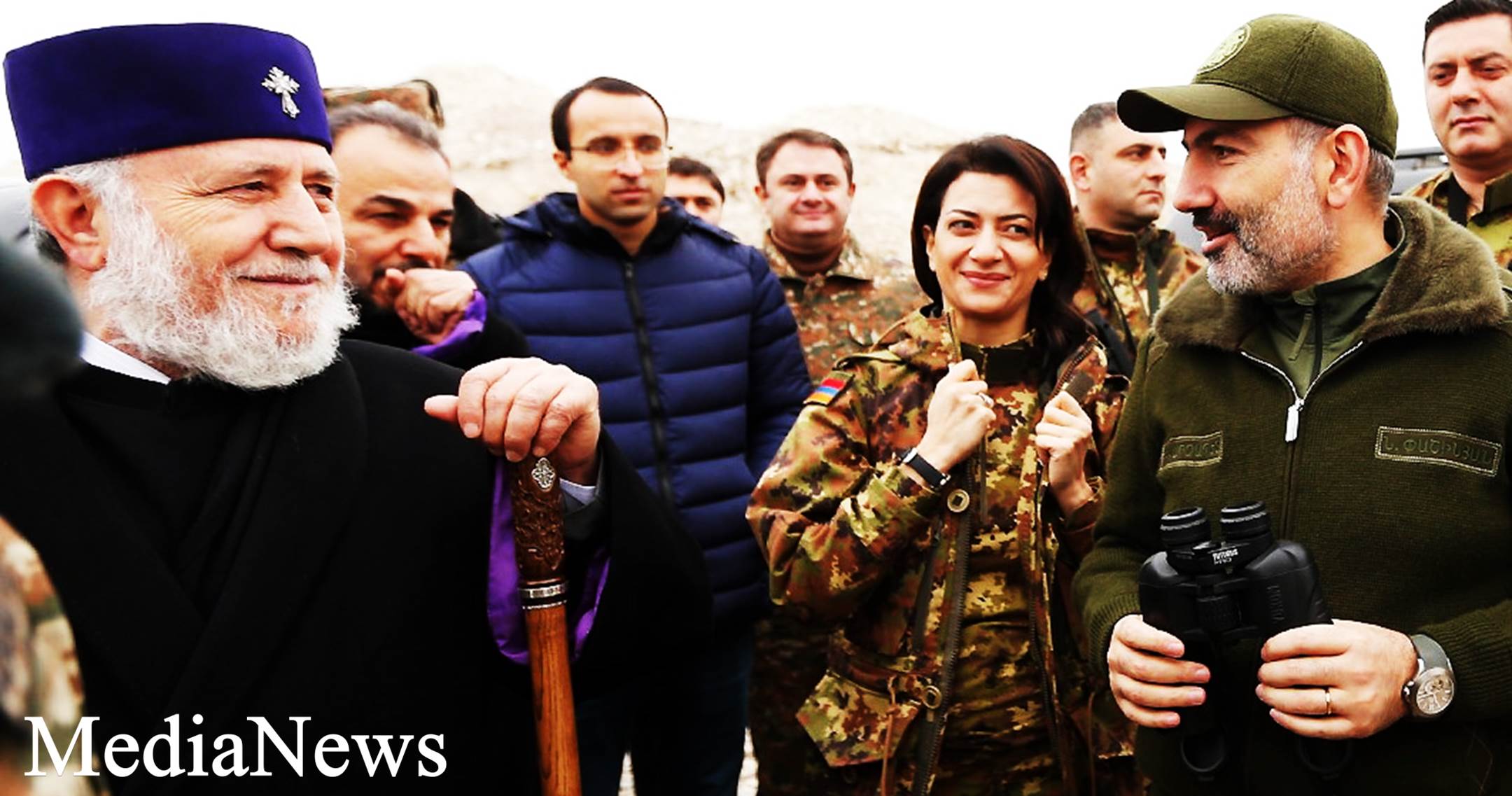 Վարչապետ Փաշինյանը եւ տիկին Աննա Հակոբյանն Ամանորի և Սուրբ Ծննդյան տոների կապակցությամբ Ամենայն Հայոց Կաթողիկոս Գարեգին Երկրորդի, Պաշտպանության նախարար Դավիթ Տոնոյանի եւ Տարածքային կառավարման եւ զարգացման նախարար Սուրեն Պապիկյանի հետ այցելել է պետական սահմանի պահպանության տեղամաս ու մարտական դիրք: