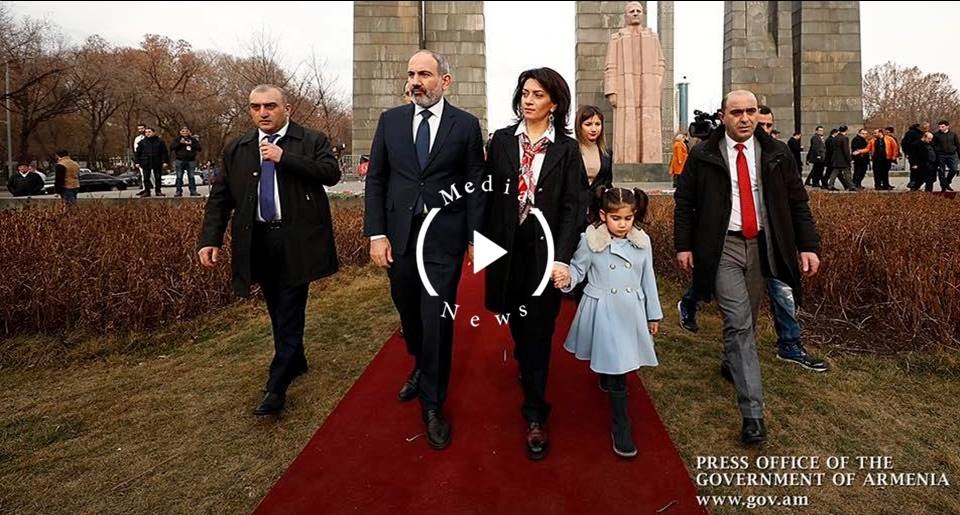 Վարչապետ Նիկոլ Փաշինյանը տիկնոջ՝ Աննա Հակոբյանի և դուստրերի հետ, հարգանքի տուրք է մատուցել 2008 թ. Մարտի 1-ի զոհերի հիշատակին՝ ծաղկեպսակ դնելով Ալեքսանդր Մյասնիկյանի արձանի մոտ: