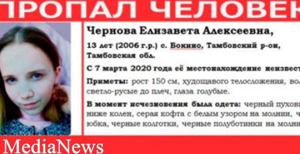 ՌԴ Տամբովի մարզի Բոկինո գյուղում 13-ամյա Լիզան մարտի 7-ին գնացել է գիշերային ակումբ և այլևս չի վերադարձել: Նույն օրը համագյուղացիները և ոստիկանությունը փնտրել են աղջկան ողջ գյուղով մեկ, բայց միայն այսօր՝ մարտի 9-ին, են հայտնաբերել… մահացած վիճակում: