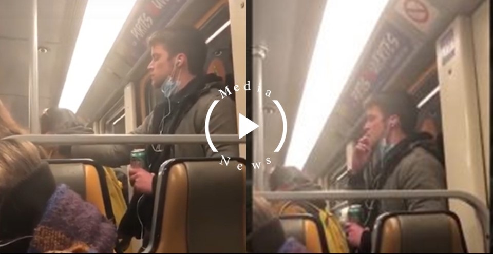 Կադրերում երևում է, թե ինչպես է տղամարդը հանում բժշական դիմակը, ապա լիզում իր ձեռքի մաստներն ու թուքը տարածում վագոնի սրահի բռնակի վրա: