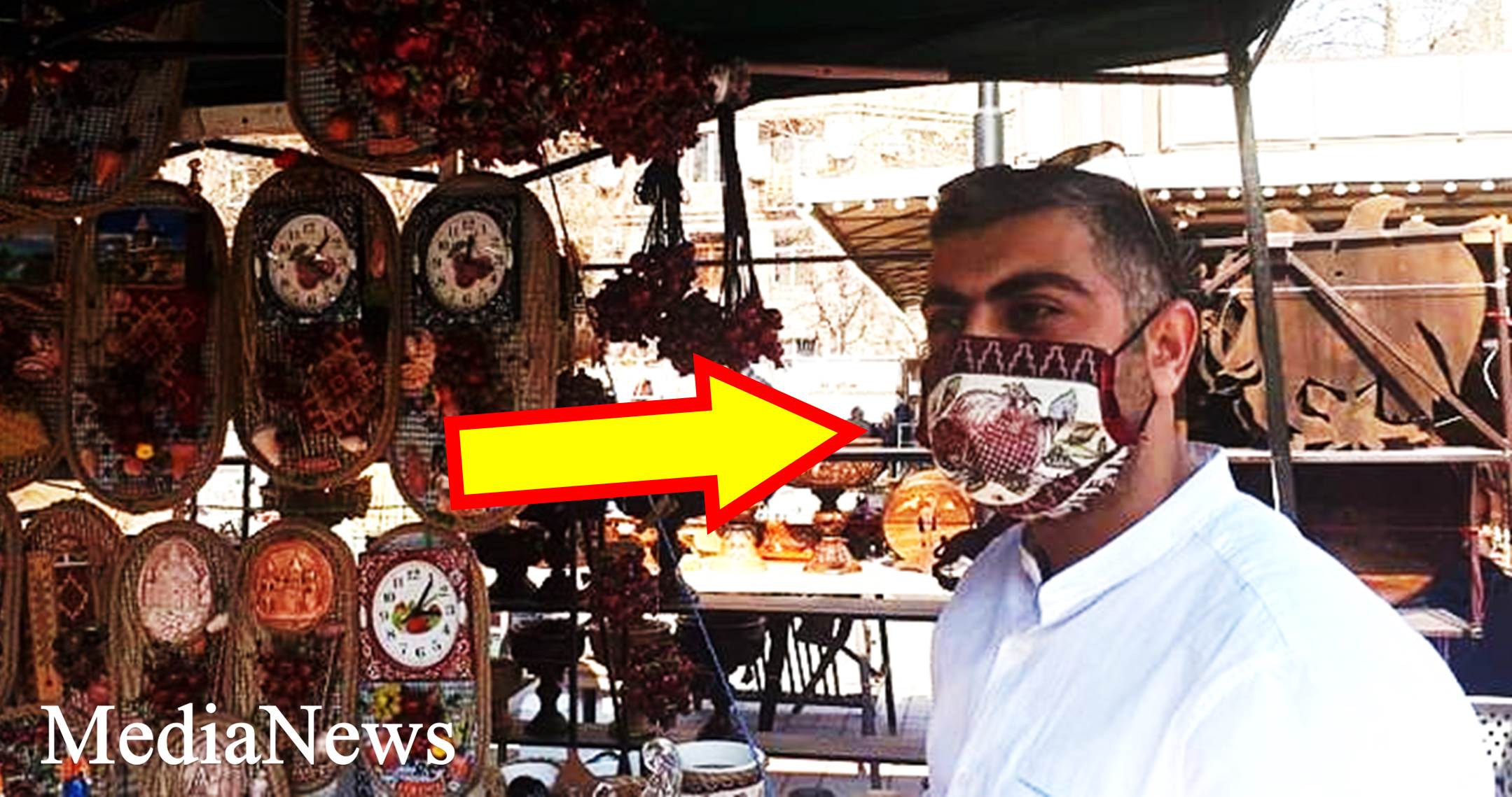 Երեւանի Վերնիսաժի զանազան ու զարմանազան ապրանքատեսակների ու արվեստի հասնող գործերի շարքում հայտնվել է եւս մեկը՝ վերջին օրերին խիստ արդիական ու պահանջարկ ունեցող: Տաղավարներից մեկում սկսել են նաեւ դիմակ վաճառել՝ հայկական կամ հայկական համարվող զարդանախշերով: