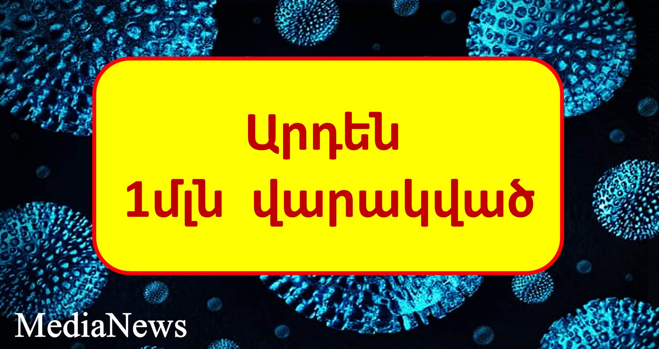 Ներկա պահին կորոնավիրուսով վարակվածների թիվը հասել է 1,000,955-ի, որոնցից ապաքինվել են 210,244-ը: Վարակակիր է 739,336 մարդ: