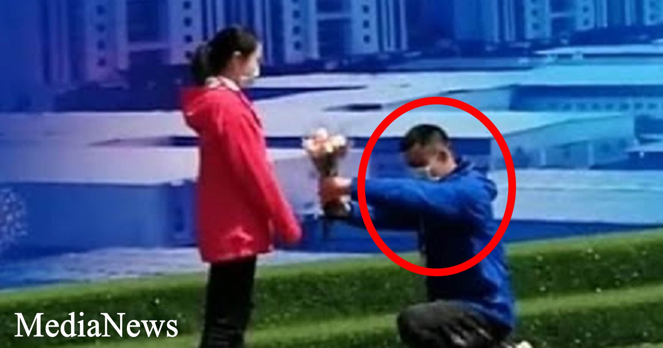 22 տարեկան բուժակը ծնկաչոք, ծաղկեփունջը ձեռքին ամուսնության առաջարկություն է արել ապրիլի 15-ին՝ հենց այն օրը, երբ փակվել է կորոնավիրուսով հիվանդների համար նախատեսված հիվանդանոցը Լեյշենշանում: