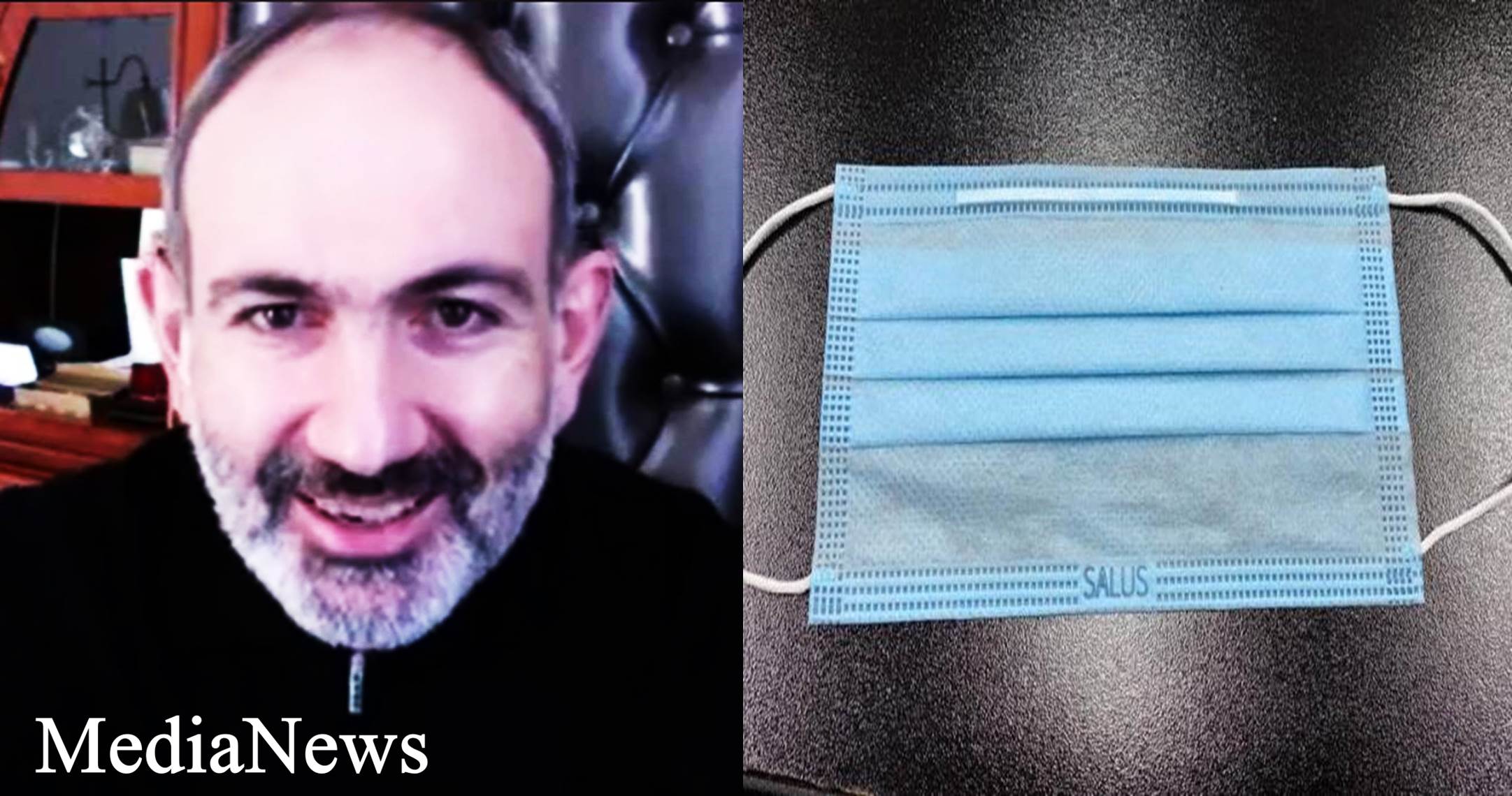 Վարչապետը պարզաբանեց՝ ինչու է դիմակով։ Նախ՝ սահմանված կանոնի համաձայն, երբ աշխատասենյակում մենակ չէ, նաև հաջորդ ասելիքը հենց դիմակի հետ է կապված։