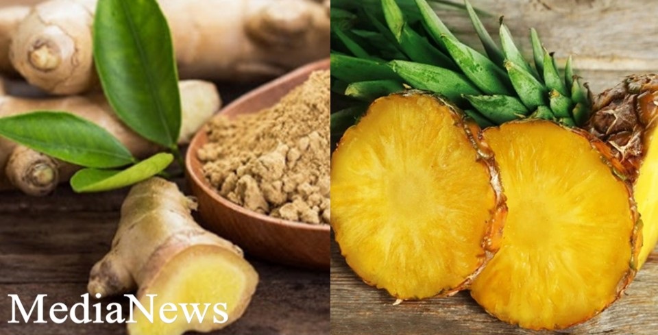 Մաքրել արքայախնձորւ կեղևը, իսկ միջուկը կտրատել փոքր կտորների։