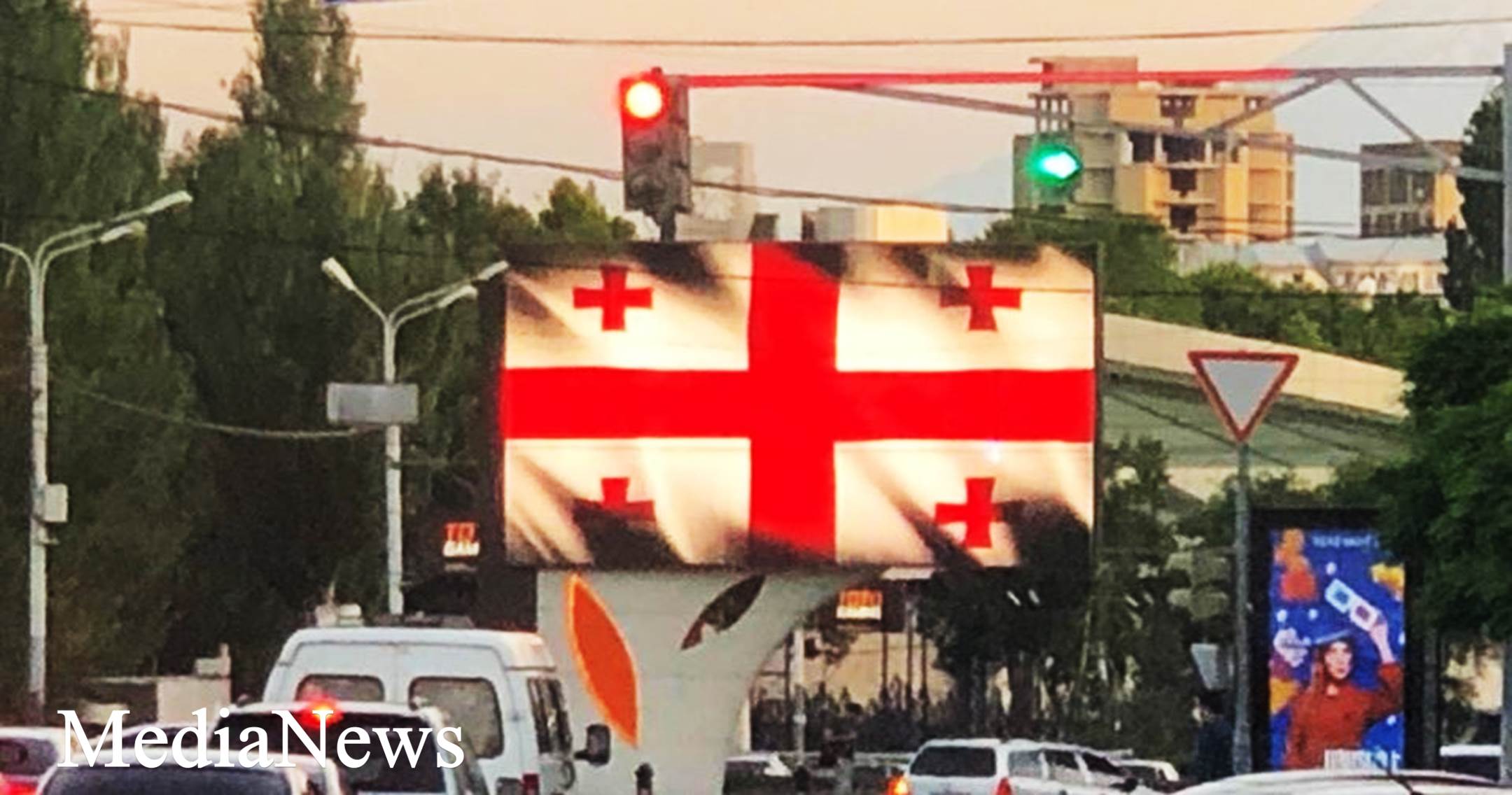 Վրաստանում ՀՀ դեսպանության և դեսպան Ռուբեն Սադոյանի նախաձեռնությամբ այսօր՝ Վրաստանի ազգային տոնի օրը, Երևանի փողոցների վահանակները լուսավորվել են Վրաստանի դրոշի գույներով։