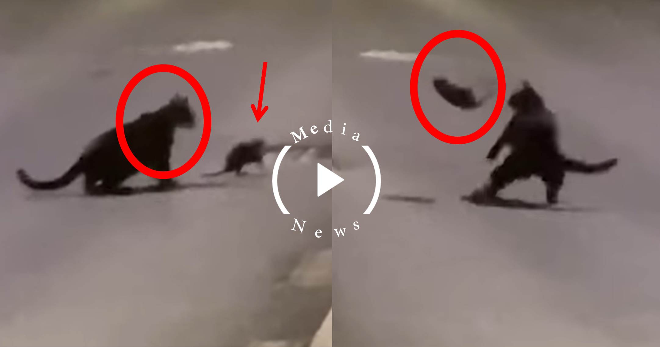This cat picks a fight with the wrong rat… 😂🐀 via ViralHog