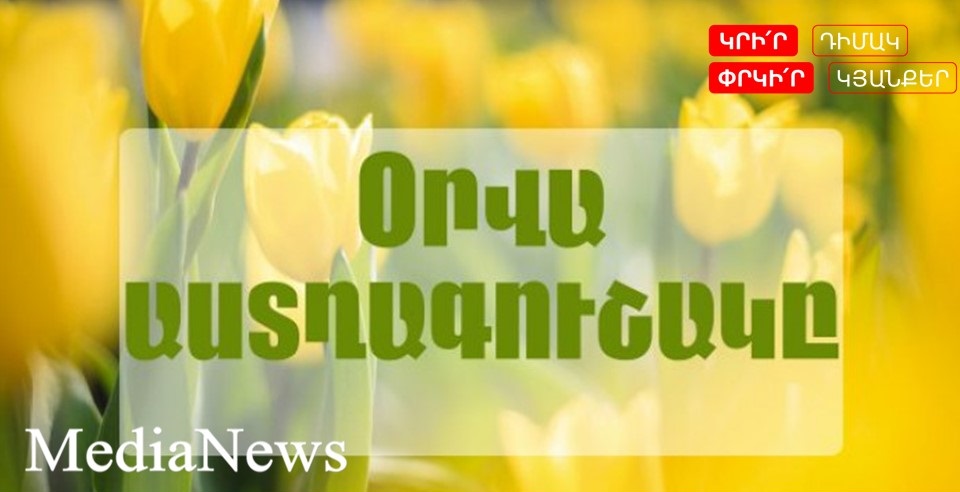 Խոյ: Իրադարձություններով հագեցած, հետաքրքիր օր է սպասվում: Անգործության չեք մատնվի: Նոր գործեր կձեռնարկեք, անգամ ամենահամարձակ մտահաղացումները հավանության կարժանանան: Օրվա ընթացքում շրջապատված կլինեք մարդկանցով, որոնց հետ հրաշալի հարաբերությունների մեջ եք: Հնարավոր են անսպասելի, սակայն շատ հաճելի առաջարկներ:Հակառակ սեռի ներկայացուցիչների հետ շփումը կուրախացնի, թեթև ֆլիրտը ձեզ մոտ հրաշալի կստացվի: Հին ընկերներից լավ լուրեր կստանաք, իսկ նարանց հետ հանդիպումը՝ հաճելի զգացողություններ կպարգևի: