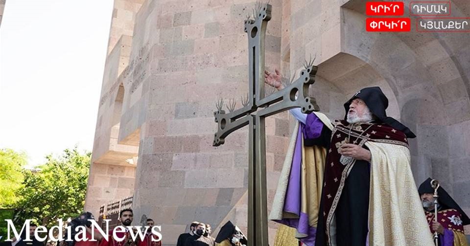 Այսօր Կաթողիկե Սուրբ Էջմիածնի հիմնադրության հիշատակի օրն է։ Այս նշանակալի տոնի բերկրանքը մեր սրտերում սրբալույս մյուռոնով օծեցինք նորակերտ այս խաչը, որը քիչ հետո, միասնական գոհաբանությամբ ու փառաբանությամբ առ Աստված, պիտի վերատեղադրվի համայն հայության Սրբություն Սրբոց աստվածակառույց Սուրբ Էջմիածնի Մայր տաճարի գմբեթին։ «Գոհություն ենք հայտնում Քեզ, Հայր Ամենակալ, որ պատրաստեցիր մեզ համար որպես նավահանգիստ Սուրբ Եկեղեցին, տաճարը սրբության, որտեղ փառաբանվում է Սուրբ Երրորդությունդ»։