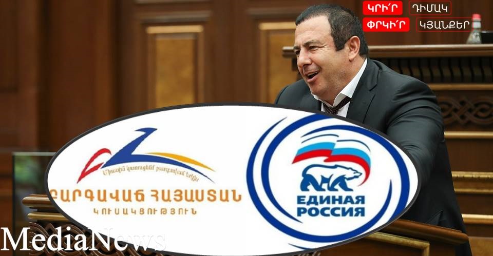 ««Միացյալ Ռուսաստան» կուսակցության Գլխավոր խորհրդի Նախագահության՝ միջազգային գործունեության հարցերով Հանձնաժողովը մտահոգությամբ ընդունեց Երևանում այս պահին բարեկամական «Բարգավաճ Հայաստան» կուսակցության և նրա առաջնորդի՝ Գագիկ Ծառուկյանի շուրջ տեղի ունեցող իրադարձությունների վերաբերյալ տեղեկատվությունը: