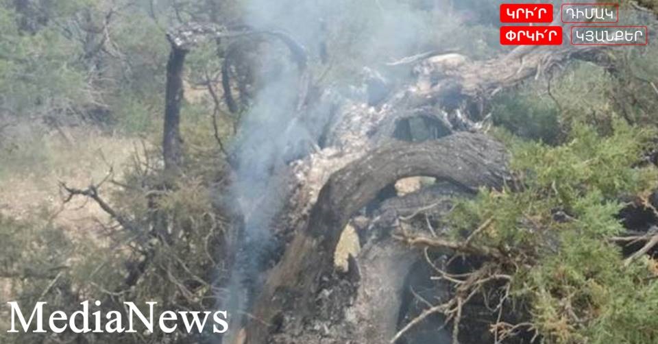 «Երեկ հրդեհ էր բռնկվել «Խոսրովի անտառ» պետական արգելոցի «Խաչաձոր» տեղամասում: «Խոսրովի անտառ» պետական արգելոցի աշխատակիցների և ԱԻՆ հրշեջ փրկարարների արջակցությամբ հրդեհը, որի բռնկման պատճառը եղել էր կայծակը, հանգցվել էր երեկոյան ժամը 20:00-ին: Մոտավորապես այրվել է 4,5 հեկտար տարածք (գիհու նոսրանտառ)»,- նշել է Գրիգորյանը և հավելել, որ իրավիճակն ամբողջովին գտնվում է վերահսկողության տակ: