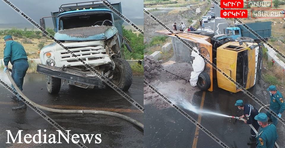 Այսօր՝ հունիսի 19-ին, խոշոր ավտովթար է տեղի ունեցել Արագածոտնի մարզում։ Ժամը 14։00-ի սահմաններում Երևան-Գյումրի ավտոճանապարհի 45 կմ հատվածում բախվել են ЗИЛ և КамАЗ մակնիշի բեռնատարները։ Ինչպես դեպքի վայրից հայտնում է ֆոտոլրագրող Գագիկ Շամշյանը, բախման հետևանքով КамАЗ-ը, որը բարձված է եղել քարով, կողաշրջվել է։ Կողաշրջման արդյունքում քարը թափվել է, իսկ ճանապարհն ամբողջովին փակվել է։