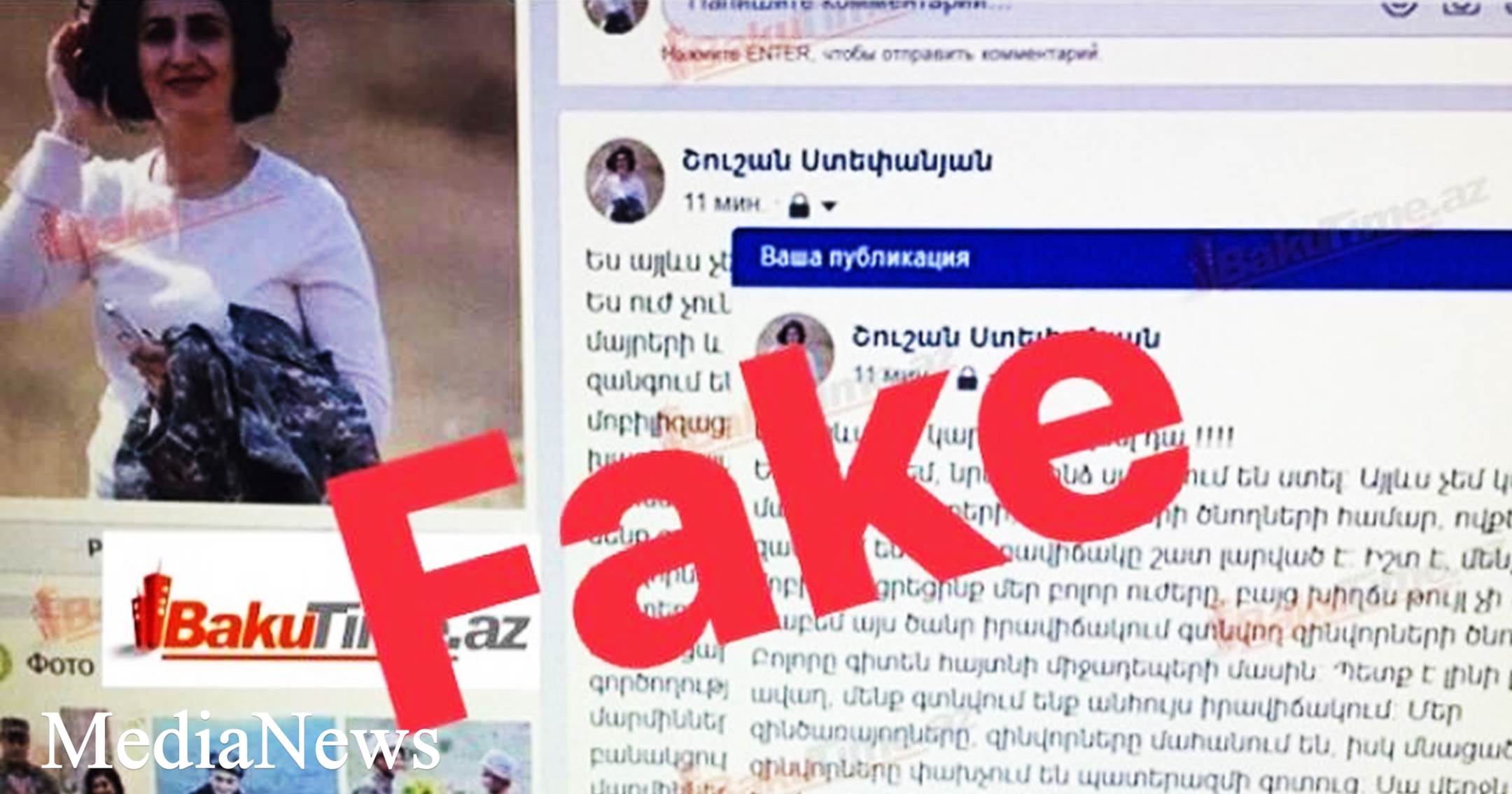 «Տեղեկատվության ստուգման կենտրոնը» հայտնում է, որ նշված գրառումն արվել է Շուշան Ստեփանյանի անունով բացված ֆեյք էջից, դրանում առկա տեղեկատվությունն ամբողջապես կեղծ է։