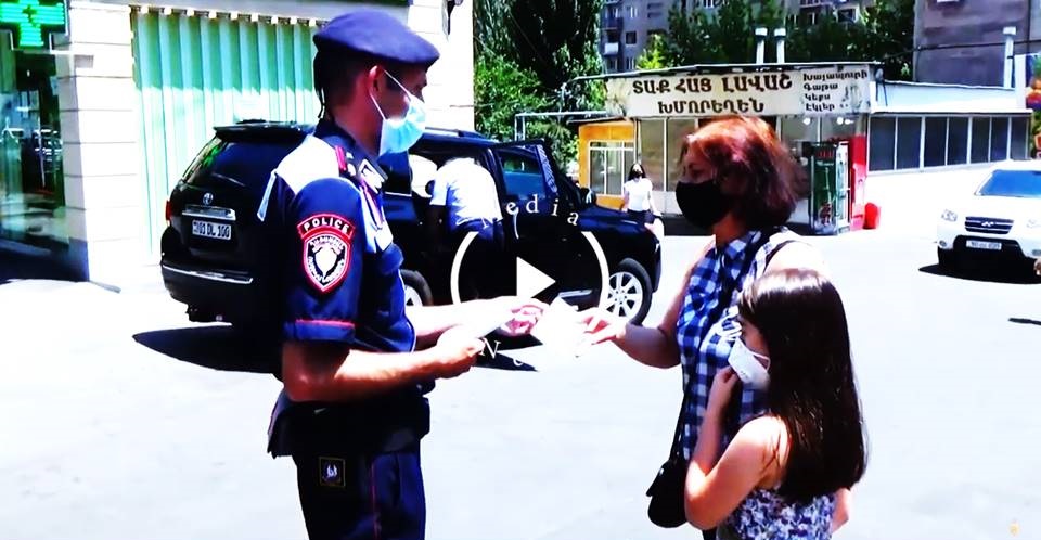 Նոր կորոնավիրուսի հնարավոր տարածումը կանխելու նպատակով սհմանված կանոններից է նաև դիմակ կրելը։ Հուլիսի 16-ին ՀՀ ոստիկանության տարածքային բոլոր ստորաբաժանումների ծառայողները իրենց սպասարկման տարածքներում «հանուն բոլորիս առողջության` կրեք դիմակ» կարգախոսի ներքո քաղաքացիներին պաշտպանիչ դիմակներ բաժանեցին։ Այս մասին հայտնեցին ՀՀ ոստիկանությունից։