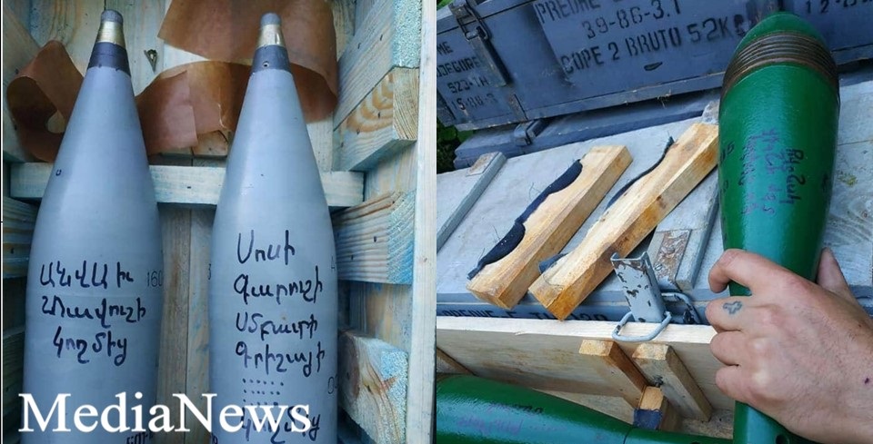 Ինչպես երևում են հրապարակված կադրերում, արկերի վրա գրված են «Անվախ Տավուշի կողմից», ինչպես նաև մարտերի ընթացքում հայկական կողմից զոհված մայոր Գարուշ Համբարձումյանի, կապիտան Սոս Էլբակյանի, կրտսեր սերժանտ Սմբատ Գաբրիելյանի և Գրիշա Մաթևոսյանի անունները։