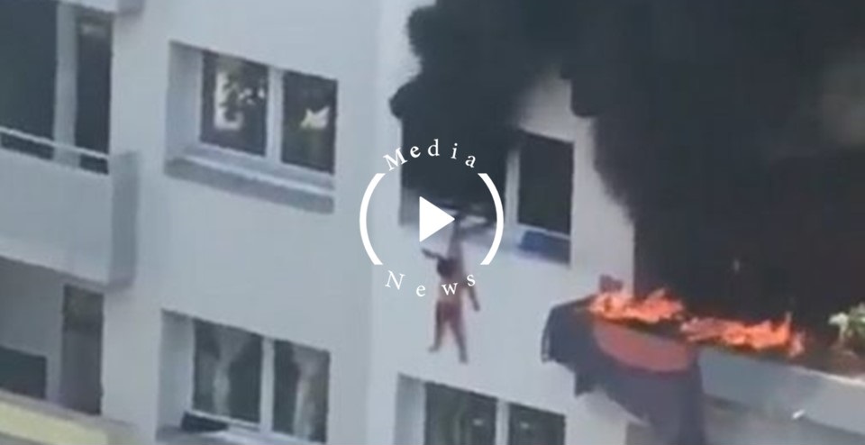 Համացանցում հայտնված տեսանյութում երևում է՝ ինչպես է ավագը կրտսեր եղբորը ցած նետում մինչ կրակի լեզուները «կուլ են տալիս» պատշգամբը: Ներքևում կանգնածների բղավոցների ներքո րոպեներ անց ցատկում է նաև ավագ եղբայրը:
