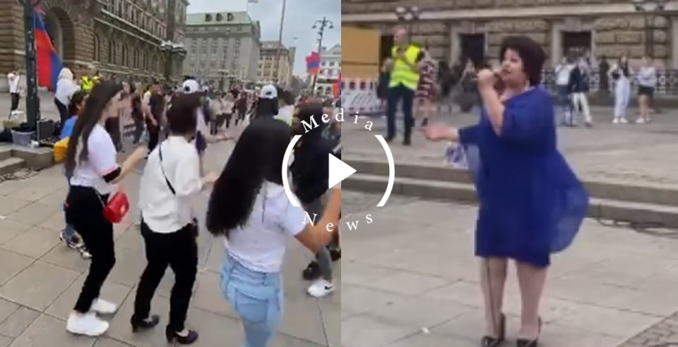 ՀՀ վաստակավոր արտիստուհի Արուս Գուլանյանը Համբուրգում կայացած խաղաղ ցույցի ժամանակ հայկական դրոշների ներքո հանդես է եկել ժողովրդական երգերի կատարմամբ: