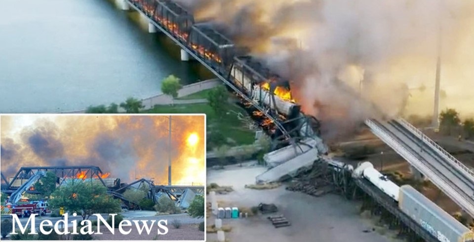 ԱՄՆ Արիզոնա նահանգի Տեմպե քաղաքում գնացքը դուրս է եկել ռելսերից, ինչից հետո ուժեղ հրդեհ է բռնկվել՝ հանգեցնելով կամրջի մասնակի փլուզմանը, հայտնում է քաղաքի ոստիկանությունը, գրում է Daily Mail-ը։