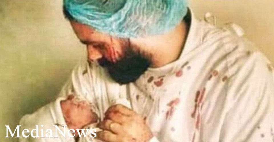 Ֆեյսբուքյան օգտատեր Ավետիս Սանգիգյանը լուսանկար է հրապարակել և գրել. «Պայդումի պահուն նոր ծնած երեխեն վիրաւոր բըժիշկին քըրկում»: