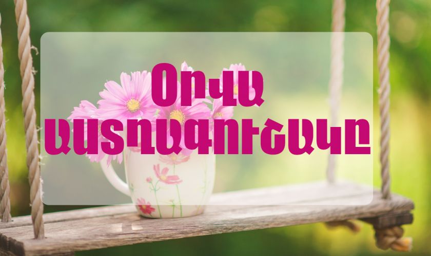 Ցուլ. Այսօր կարելի է հասնել զգալի արդյունքների: Օրվա հաղթանակները պատահական չեն` դրանք կդառնան համառ աշխատանքի, թափած լուրջ ջանքերի արդյունք: Ձեզ հաճույք է պատճառում ֆիզիկական աշխատանքը, սակայն մինչև գործի անցնելը պետք է այն հստակ պատկերացնել:Այսօր ինքնազգացողության և բարձր տրամադրության ամենագլխավոր գրավականները կլինեն ակտիվ հանգիստը և սպորտը: Եթե դուք չկարողանաք ձեր ափերից դուրս եկող եռանդը ուղղորդել խաղաղ հունով, ապա կդառնաք շատ բռնկուն և նյարդային: Սակայն կոնֆլիկտներ չեն ծագում, քանի որ շրջապատը ձեր նկատմամբ ներողամիտ ու համբերատար է:
