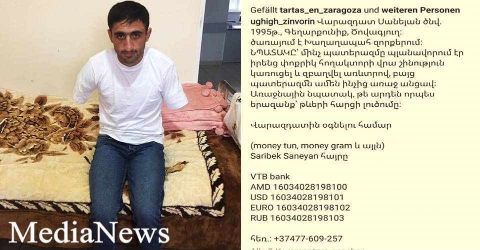 Խնդրում եմ, եկեք նախատոնական այս բարի օրերին օգնենք մեր տղաներին Վարազդատին նոր թևեր են պետք նրանց ծնողներն իսկապես այս թանկ վիրահատությունները վճարել չեն կարող։