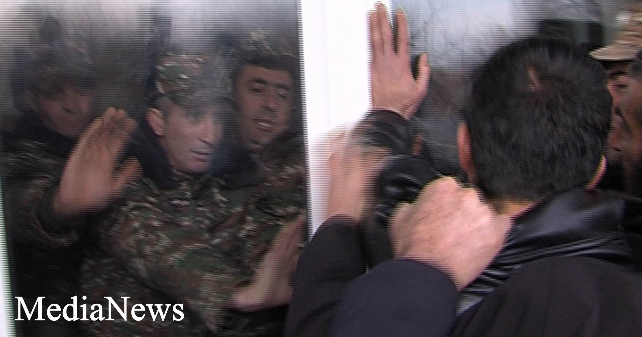 Կեսօրին ակցիայի մասնակիցների և գնդի հրամանատարի միջև վիճաբանություն է սկսվել։ Ծնողները կոտրել են նաև ապակիներ։ Շտաբի պաշարումը դադարեցնելու համար անհետ կորած զինծառայողի մորը՝ Անահիտ Ադոյանին, ներս են հրավիրել։ Վերջինս Ռազմական ոստիկանության վարչության պետ Աշոտ Զաքարյանի հետ մոտ մեկ ժամ բանակցելուց հետո հայտարարել է, որ կտրուկ գործողությունները դադարեցնում են, բայց չեն հեռանալու։