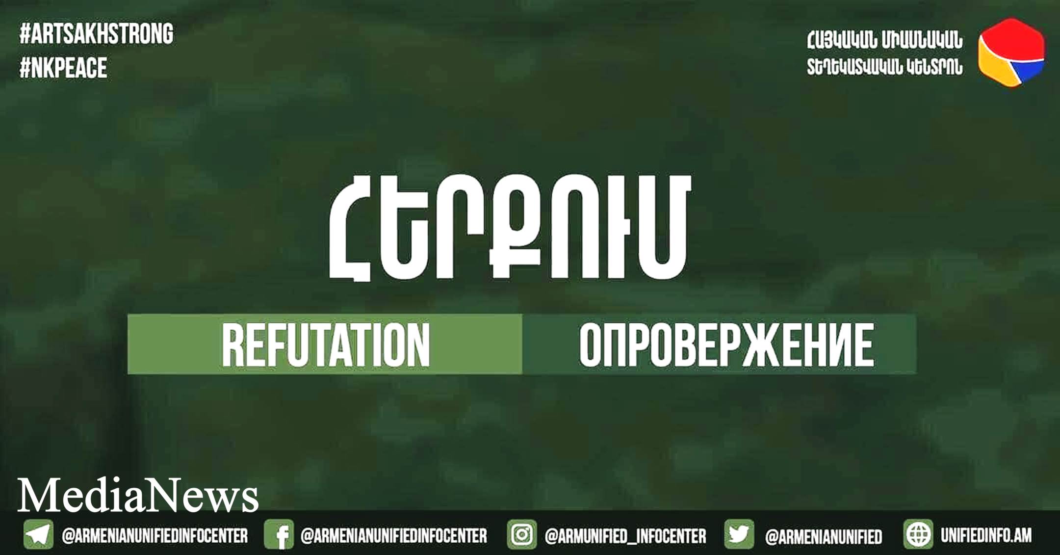 «Ադրբեջանական լրատվամիջոցների, տելեգրամյան ալիքների միջոցով տարածվող լուրերն ու տեսանյութերն այն մասին, թե իբր նախօրեի ռազմական գործողությունների հետևանքով հայկական կողմը զոհեր ունի, բացարձակ ապատեղեկատվություն է։