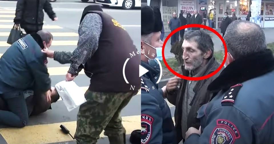Նրանք զրուցում էին, որից հետո ոստիկան գետնին է տապալում ցուցարարին, սակայն ինքն էլ նրա հետ ընկնում է գետնին: