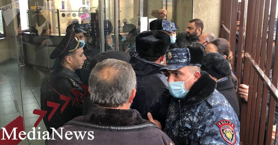 Ակցիայի մյուս մասնակիցները պահանջում են անցնել անցակետով, սակայն նրանց ճանապարհը փակում են ոստիկանները։