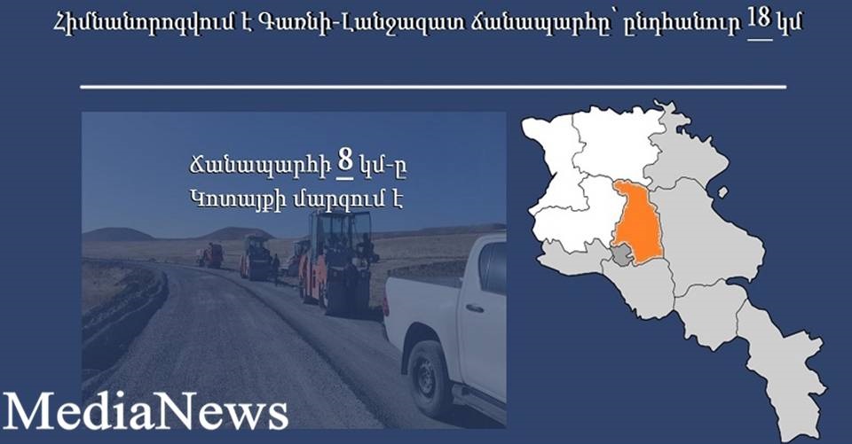 Տարածքային զարգացման հիմնադրամի և Համաշխարհային բանկի ֆինանսավորմամբ հիմնանորոգվում է Գառնի-Լանջազատ ճանապարհահատվածը: Այդ մասին Ֆեյսբուքի էջում գրել է Կոտայքի մարզպետ Մեսրոպ Մեսրոպյանը: