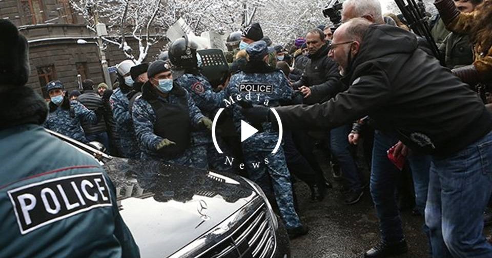 Մելիք Ադամյան փողոցում րոպեներ առաջ ցուցարարների և ոստիկանների միջև հրմշտոց է եղել: Դեպքը եղել այն ժամանակ, երբ ոստիկանները փորձել են բացել փողոցը, որպեսզի կառավարական մեքենաների մուտքն ու ելքն ապահովեն: