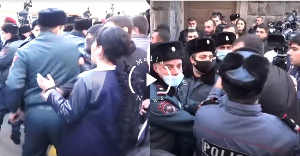 Ոստիկաններին օգնության հասան «կարմիրբերետավորները»: Նրանք սկսեցին ուժով հետ հրել երիտասարդներին: