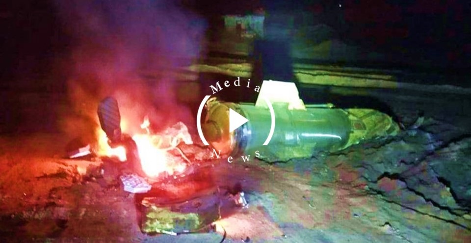#Syria: unusual scene filmed tonight over Jablah. This is the failed launch of a long range missile fired from #Kheimimim Airbase to strike oil facilities in N. #Aleppo countryside. pic.twitter.com/3f3iqsIjhH