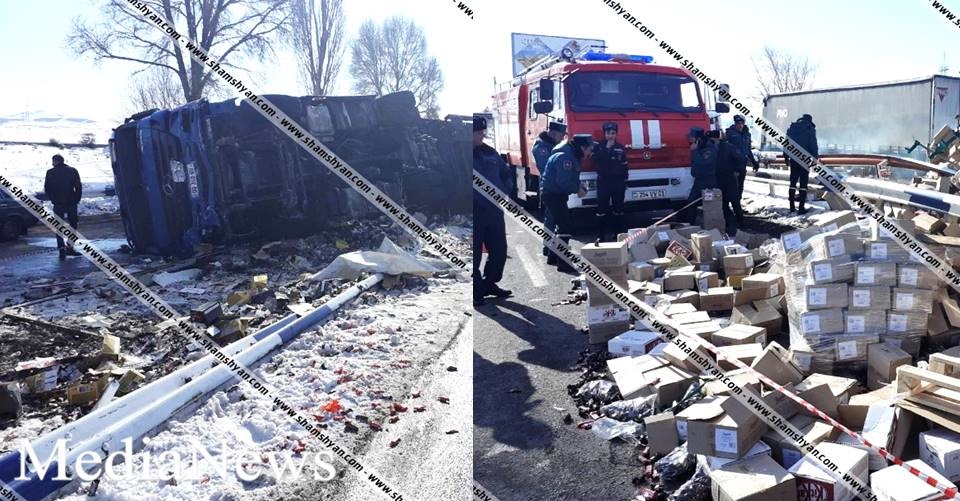 Աղբյուրի հաղորդմամբ՝ հայտնում է, որ ավտոմեքենան բարձված է եղել 20 տոննա «Ռոշեն» քաղցրավենիքով և այն ամբողջովին թափվել է: