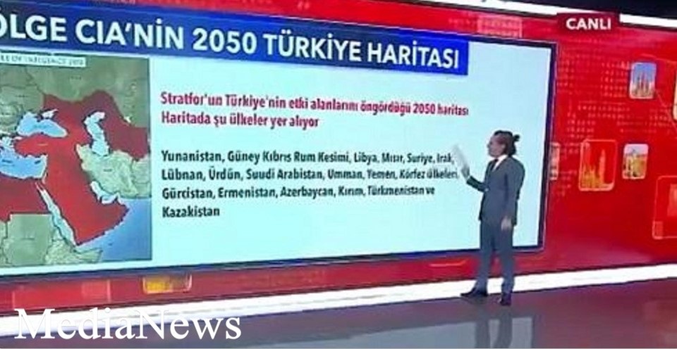 Թուրքիայի TRT1 պետական հեռուստաալիքը ցուցադրել է պետության քարտեզը 2050 թվականի դրությամբ, որտեղ ներգրավված են ռուսական տարածքներ: