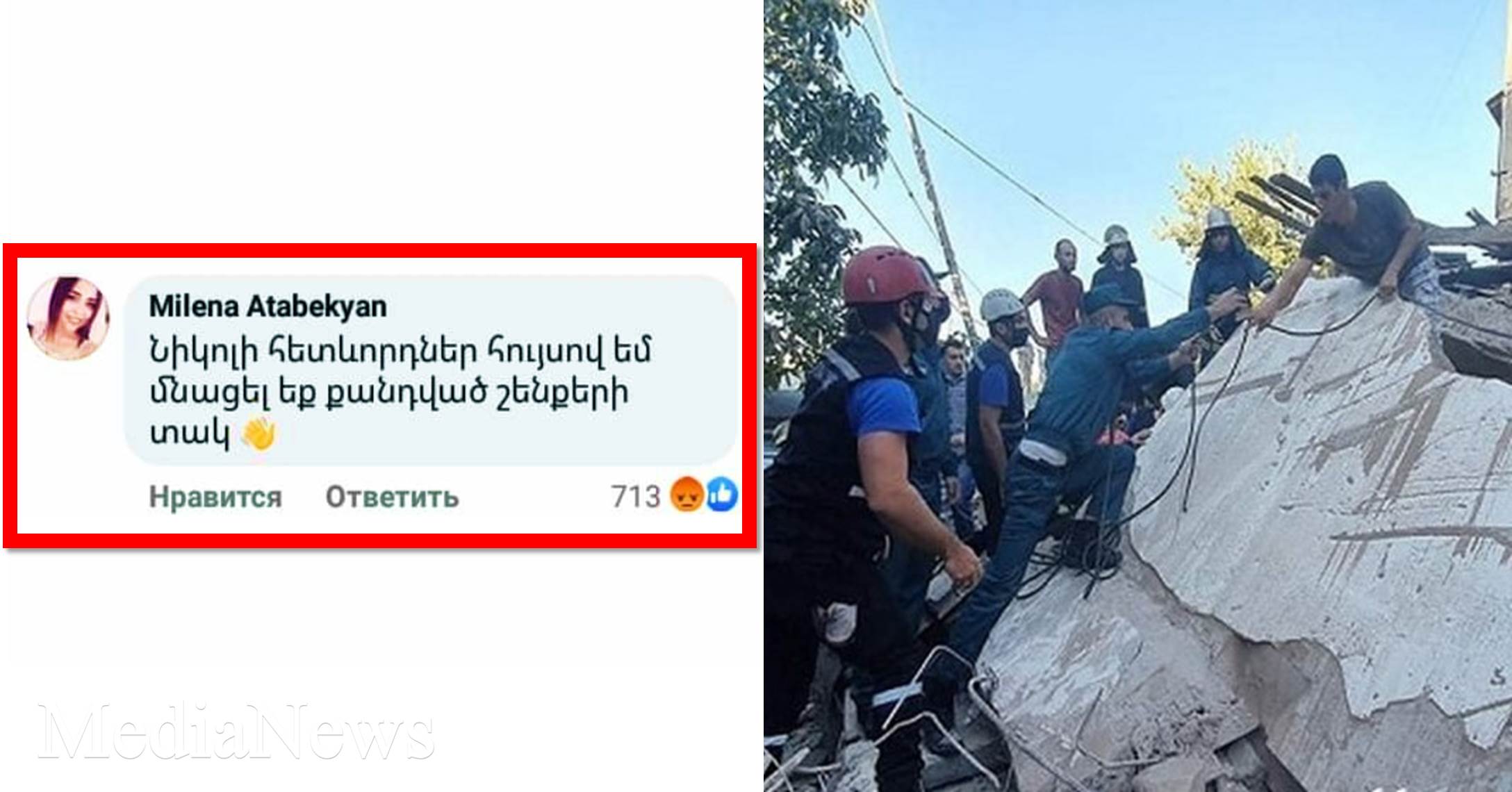 Ձեզ ենք ներկայացնում այսօրվա երկրաշարժից հետո ,քարաթափված շենքի մասին նյութի տակ, օգտատիրոջ ատելություն պարունակող գրառումը ,որը մեզ ուղարկեց Ֆեյսբուքի օգտատերերից մեկը ,ում կարծիքով գրառման հեղինակ Միլենա Աթաբեկյանը, «ամենայն հավանականությամբ հայկական ազգանունով թուրքի էջ է,որովհետև անհնար է հայը հային մահ ցանկանա» ։