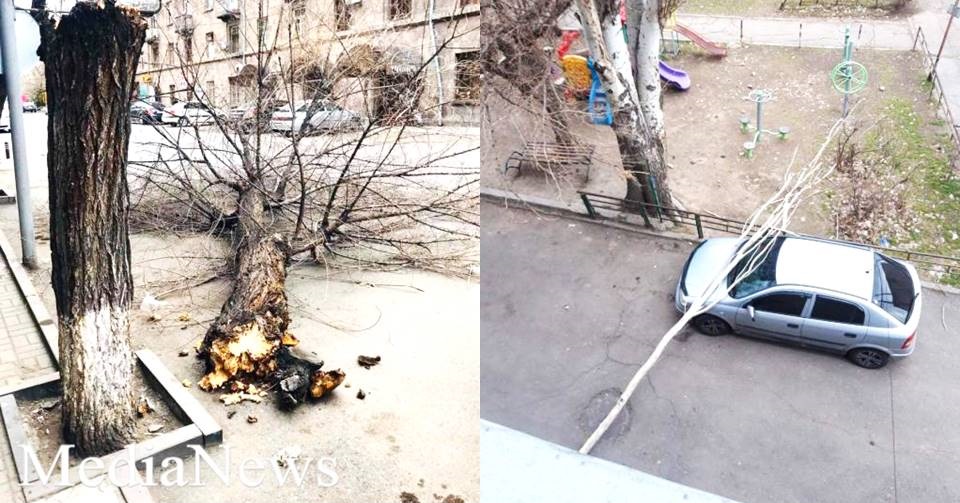 «Այսօրվա քամու հետևանքներն են՝ տապալված ծառեր ․․․ Եթե ծառը կանգուն է, դեռ չի նշանակում, որ այն առողջ է»։