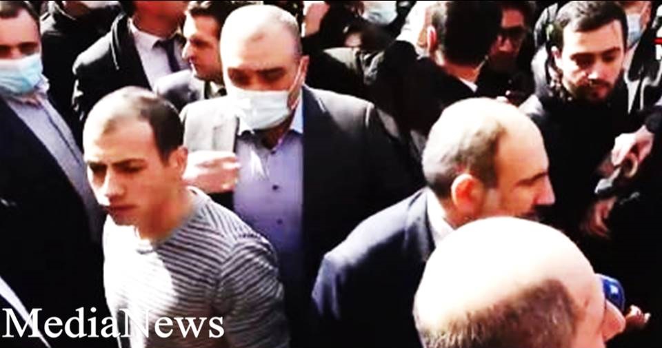 ՀՀ վարչապետ Նիկոլ Փաշինյանը դուրս է եկել կառավարության շենքից և զրուցում է Հանրապետության հրապարակում հավաքված լրագրողների և հանրության հետ։ Փաշինյանին ուղեկցում է նրա որդին՝ Աշոտ Փաշինյանը։