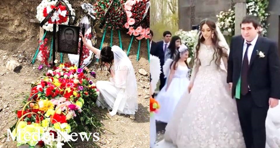 Սա Ստեփանակերտի Եղբայրականում է դուստրը իր հոր օրհնության հետևից եկել է նրա նոր թաղված շիրիմին։