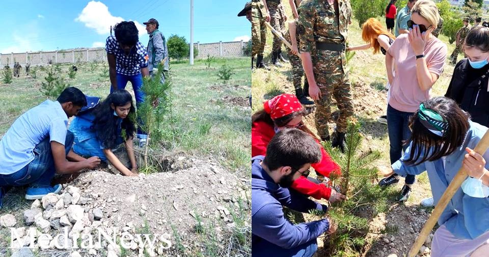 «Աշխարհի 38 երկրից ԵՊԲՀ շուրջ 100 օտարերկրացի ուսանող, այդ թվում՝ ռազմական բժիշկներ, այսօր «Եռաբլուր» զինվորական պանթեոնում տնկեցին 100+33 ծառ։