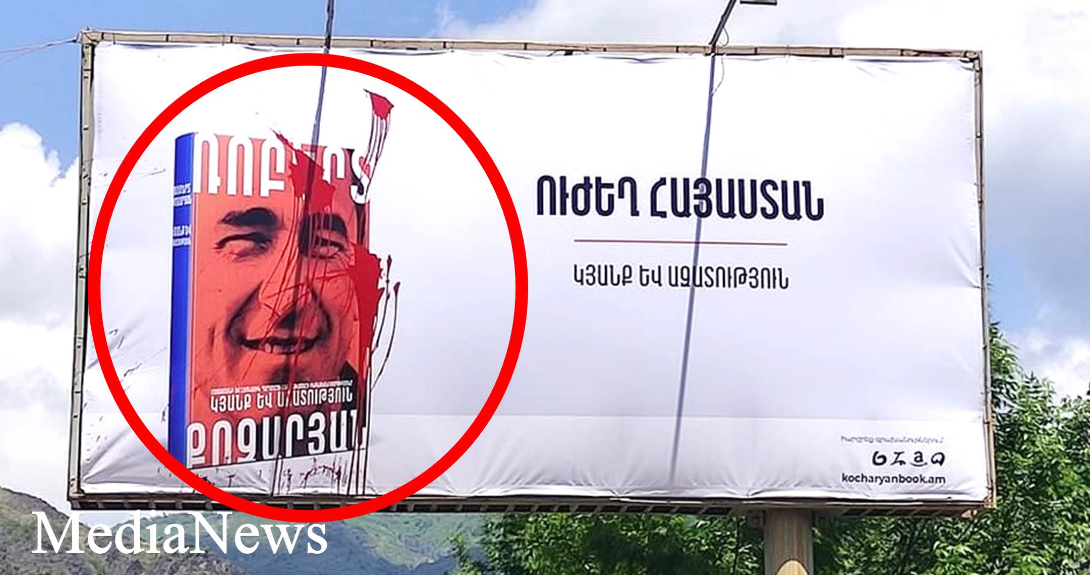 Լոռու մարզում գործունեություն ծավալող «Համայնքային համախմբման և աջակցության կենտրոն» ՀԿ-ի տնօրեն Օլեգ Դուլգարյանը իր ֆեյսբուքյան էջում լուսանկար է հրապարակել՝ գրելով. «Ալավերդիում Քոչարյանի պաստառը ներկել են կարմիր գույնի ներկով»: