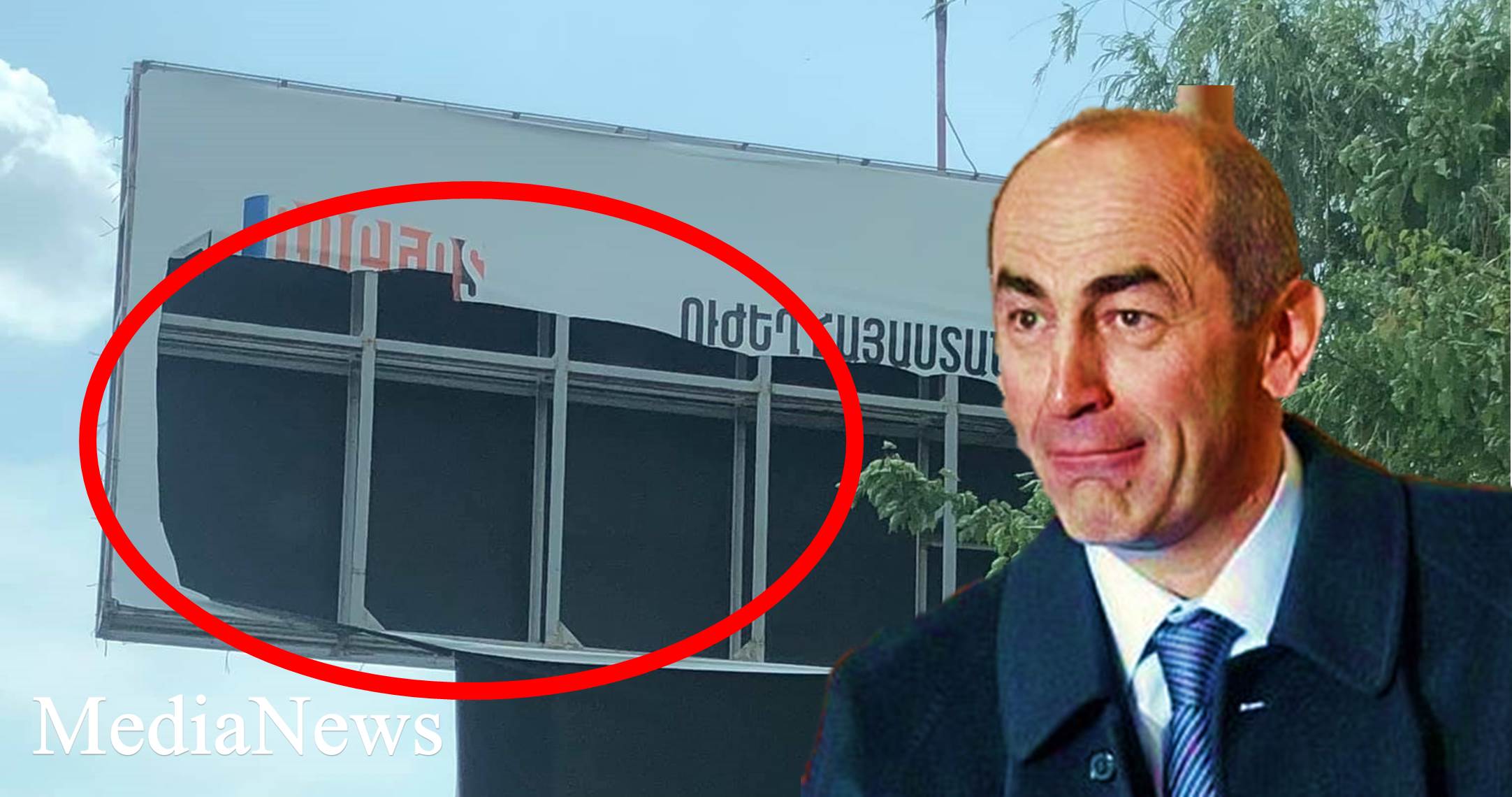 Համացանցում նաև հայտնվել է լուսանկար Ագարակից, որտեղ քաղաքացիները գրեթե ամբողջությամբ պատռել են Քոչարյանի պաստառը։