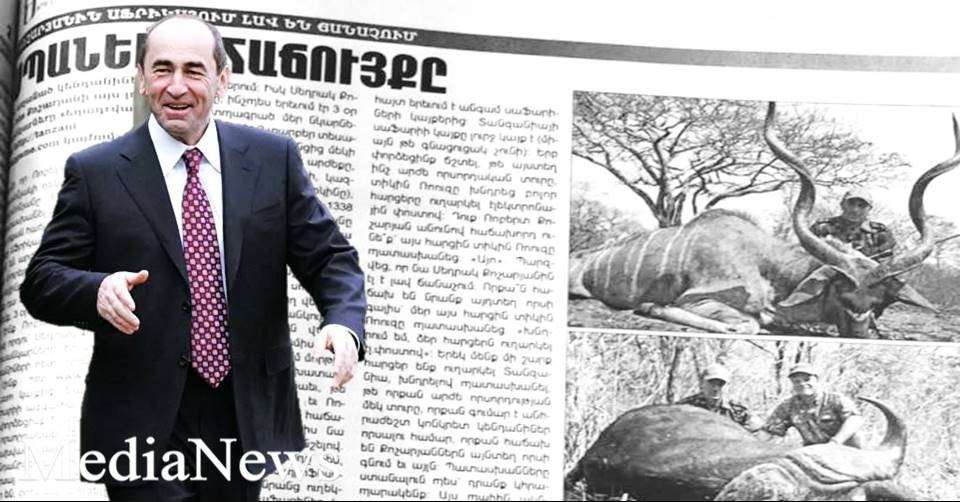Ընթերցողը, անշուշտ, ճանաչեց իրեն «Վոյին» հռչակած Ռոբերտ Քոչարյանին: Լուսանկարն արված է 2009 թվականին`աֆրիկյան Տանզանիա կոչվող երկրի Կատավի ազգային պարկում: Չէ՛, մի՛ վախեցեք, առյուծը, որին այդքան հավեսով հեծնել է Քոչարյանը, սպանված է: Նրան սպանել է հենց Ռոբերտ Քոչարյանը: Ամենահետաքրքիր հարցը, թերեւս, այն է, թե ինչու է սպանել, քանի որ առյուծի միսը ուտելու չէ: Սա ընդամենը սպանելուց, հոշոտելուց, վերացնելուց հաճույք ստացող մարդու մանկության երազանքի իրագործում է, ինչը բավական թանկ արժե` մինչեւ մի քանի հարյուր հազար դոլար: Այստեղից առաջանում է հաջորդ հարցը` որտեղի՞ց Ռոբերտ Քոչարյանին այդքան փող: