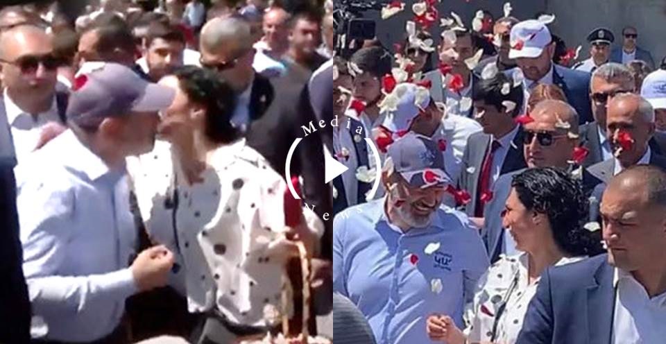 Կանանցից մեկը վարդի թերթիկներ շաղ տվեց Նիկոլ Փաշինյանի վրա: