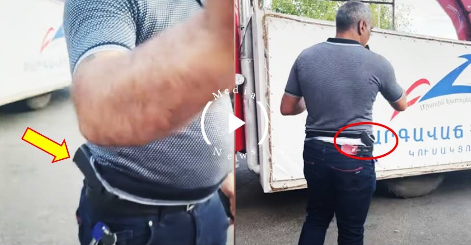 Այս բանավեճի ընթացքում մեր տեսախցիկն արձանագրեց, որ տվյալ անձը զենք է կրում գոտկատեղին, ընդ որում ամեն կերպ փորձելով այն ի ցույց դնել: Հասկանալով, որ զենքն ենք նկարում, նա գրպանից հանեց ինչ-որ վկայական՝ ասելով, որ զենքն օրինական է: Նկարելով նաեւ վկայականը, ըստ որի վրա առկա տվյալների տվյալ անձը Գարեգին Լոպոյանն էր, մտնում էինք խմբագրություն, երբ ԲՀԿ ներկայացուցիչը սկսեց սադրել՝ մեր ետեւից բղավելով «հող հանձնողներ», «էսօր էլի գերի եք տվել», «ադրբեջանցիներ» եւ այլն: