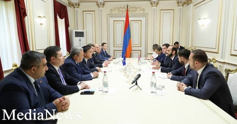 Առաքելության անդամ, Ղազախստանի Մեջլիսի միջազգային հարաբերությունների, պաշտպանության եւ անվտանգության հանձնաժողովի քարտուղար Մուխտար Երմանը, ողջունելով Արարատ Միրզոյանին Ղազախստանի Մեջլիսի նախագահ Նուրլան Նիգմատուլինի անունից, հույս հայտնեց, որ արտահերթ խորհրդարանական ընտրությունների արդյունքում Հայաստանի զարգացման նոր էջ կբացվի: