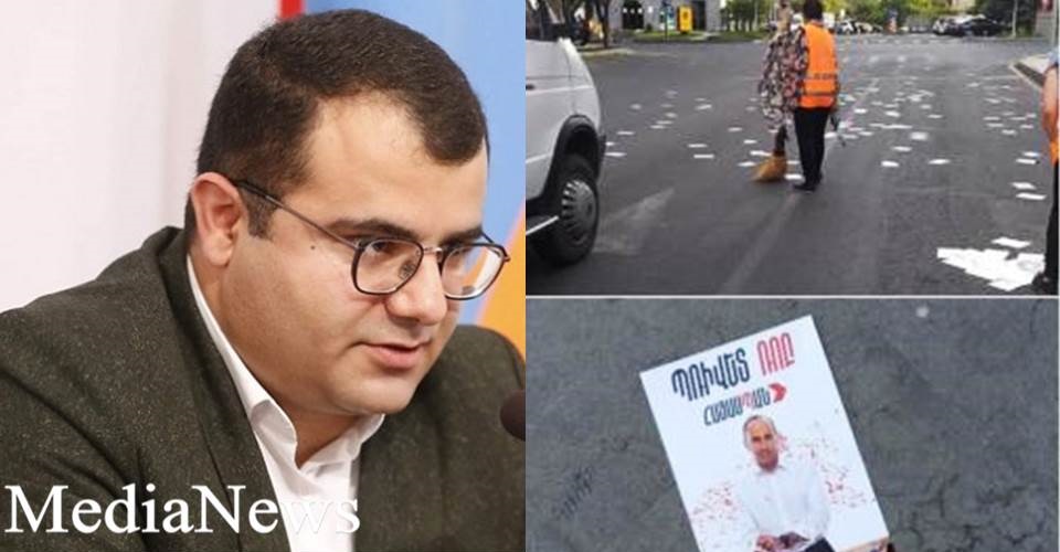 Երևանի քաղաքապետի մամուլի խոսնակ Հակոբ Կարապետյանը ֆեյսբուքյան էջում պարզաբանում է տարածել Երևանի փողոցներում թափված՝ Ռոբերտ Քոչարյանի քարոզչական պաստառով թռուցիկների վերաբերյալ։