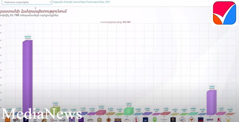 Կենտրոնական ընտրական հանձնաժողովը ներկայացրել է 790 ընտրատեղամասերից ստացված քվեարկության արդյունքների մասին նախնական տեղեկատվությունը: