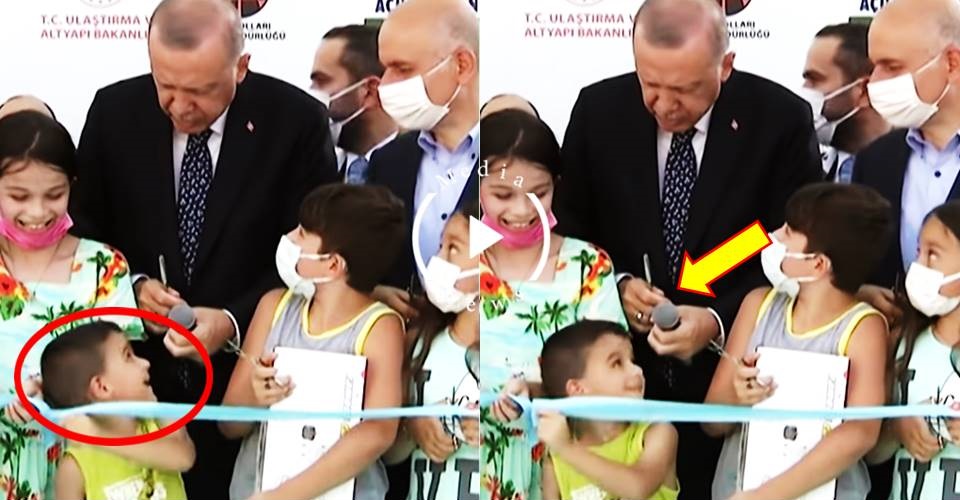 Բայց ժապավենը կտրելու արարողությանը նախորդել են երկար ելույթներ ու երխոսություններ, մանկահասակ երեխաներից մեկը այլևս չի համբերել, առանց Էրդողանի հրահանգին սպասելու կտրել է ժապավենը։